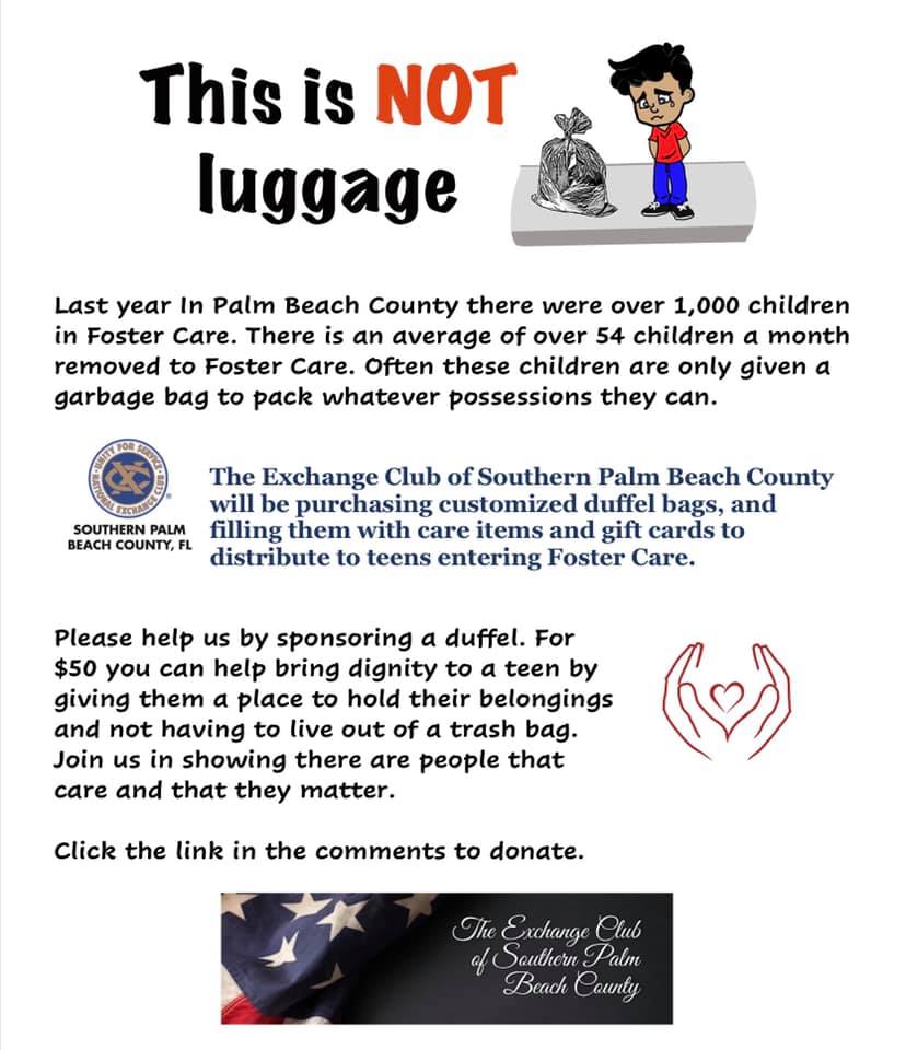 In support of the VA and the homeless veterans in our county, the Exchange Club of Southern Palm Beach County supplied much needed backpacks, clean t-shirts, COVID masks, and various non-perishable food items to be distributed. While no one who served should be homeless, it is a grim reality. Exchange serves those who served. Please consider donating by going to the GIVING page on our website to support this and other initiatives. #exchangecares