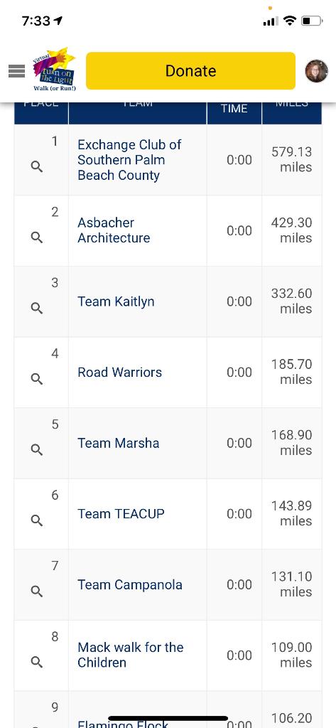 The Exchange Club Team came in first for number of miles!